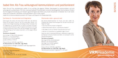 Einsatz als Mentorin für Frauen und Expertin für Identität in der VRM Business-Akademie