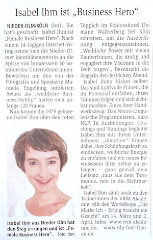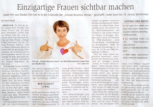 Presse-Veröffentlichung zum Sieg von Isabel Ihm als Female Business Hero 2018